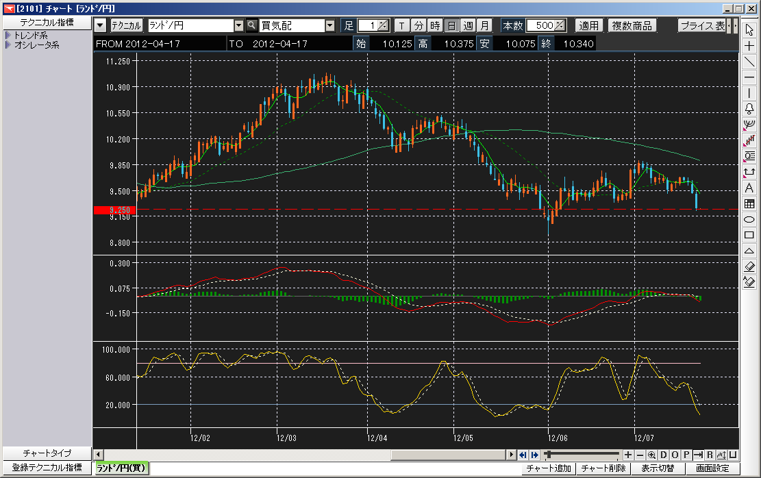 南アフリカランド9.3円半にあったサポートラインも軽く越してしまった。