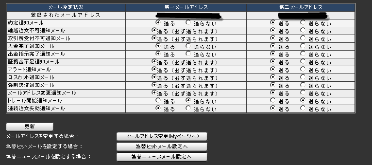 ※第一メールアドレスは、一部の通知メール以外は必ず通知されます。第二メールアドレスは、上記メールのうち必要なもののみ設定が可能です。