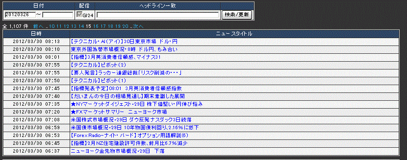 WEBブラウザの取引画面の情報に「ニュース」欄がある。ここにはFX取引に参考になる情報が掲載される。
