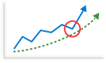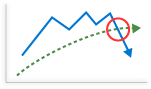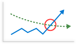 (1) 下向きだった移動平均線が、横ばいか上向きになり、 為替レートが移動平均線を上に突き抜けたら買い |