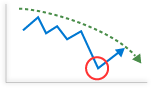 (2) 下降している移動平均線を為替レートが上まわった(越えた)ものの、 ふたたび下落して移動平均線を突き抜けたら売り |