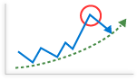 (2) 上昇している移動平均線を為替レートが下まわった(割り込んだ)ものの、 ふたたび移動平均線を突き抜けて反発したら買い(押し目買い) |